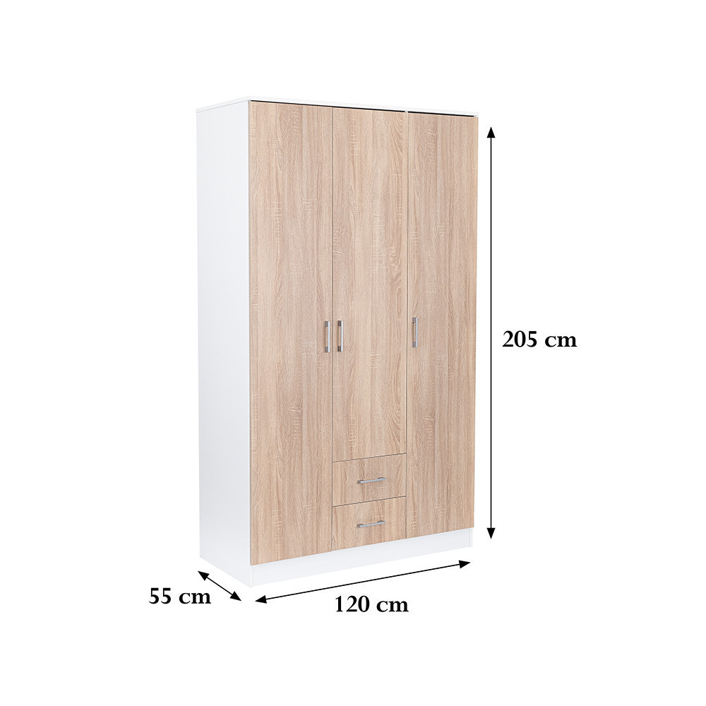 Az elegáns sonoma tölgy front és a fahatású fehér korpusz ötvözete tökéletes harmóniát teremt a nappaliba vagy a hálószobába egyaránt. A 205 cm magas, 120 cm széles és 55 cm mély gardróbszekrény ideális választás mindenki számára, aki szeretné rendszerezni ruháit és kiegészítőit.