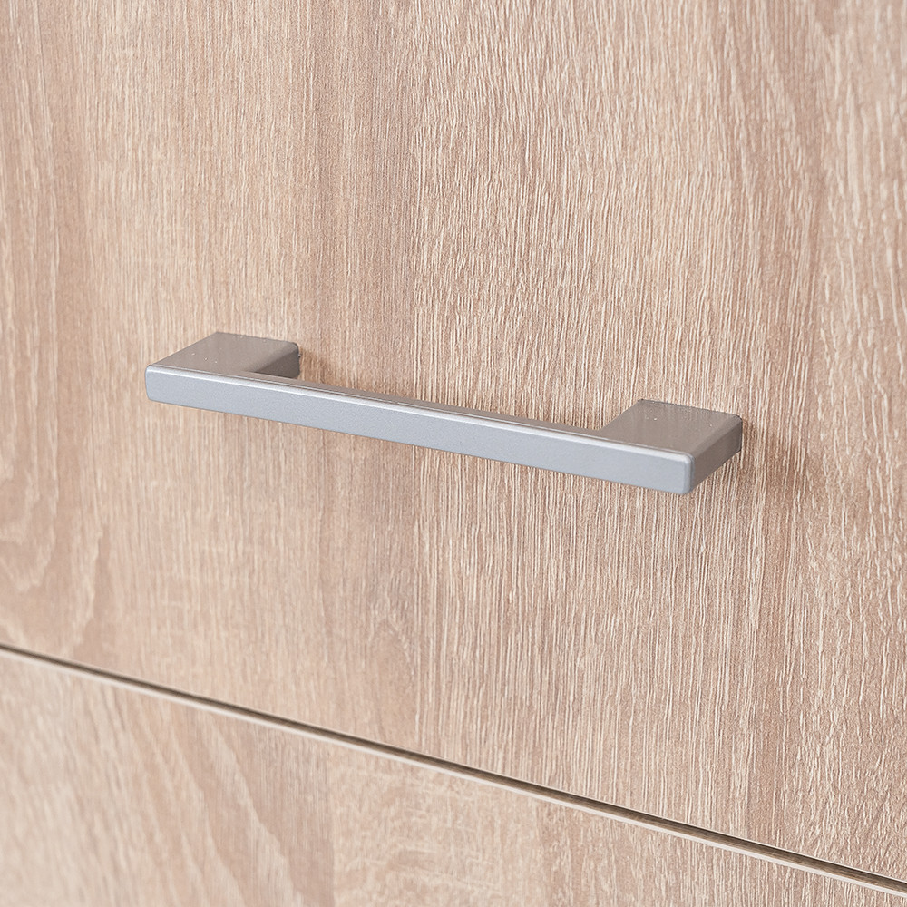 A matt króm hatású műanyag fogantyúk modern megjelenést kölcsönöznek, míg a két szárnyú nyílóajtó és a polcrendszerekhez kialakított ajtók révén az egész szekrény belseje könnyen áttekinthető, így minden ruhadarab és tárgy könnyedén elérhető. A 11 polc és a két görgős fiók bőséges tárolóhelyet biztosít legyen szó ágyneműről, szezonon kívüli ruházatról vagy fehérneműkről.