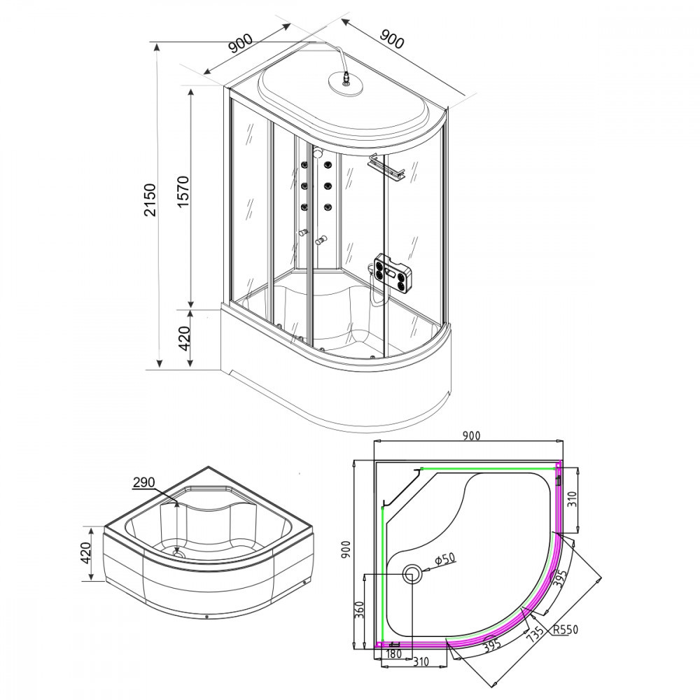 Mila hidromasszázs zuhanykabin, 90x90x215 cm