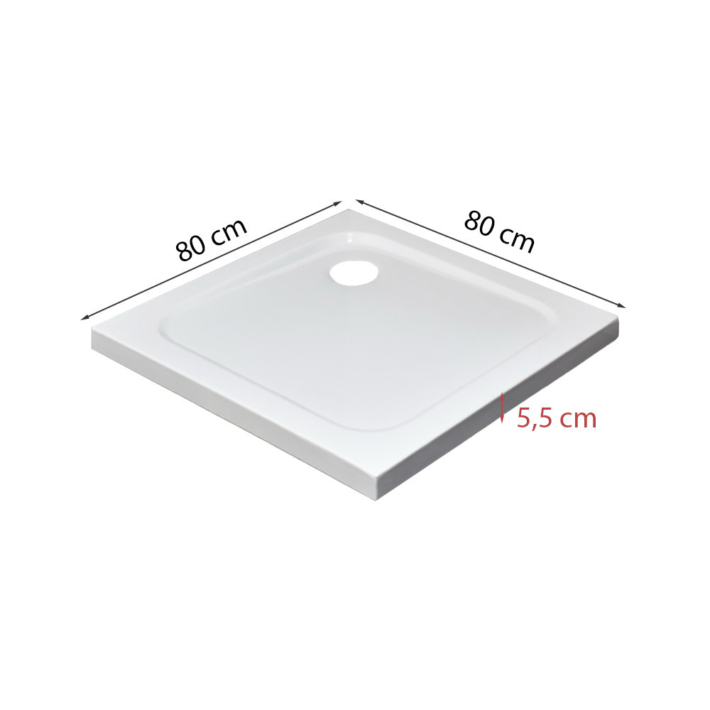 Modena Slim szögletes alacsony akril zuhanytálca, 80x80x5,5 cm-es méretben