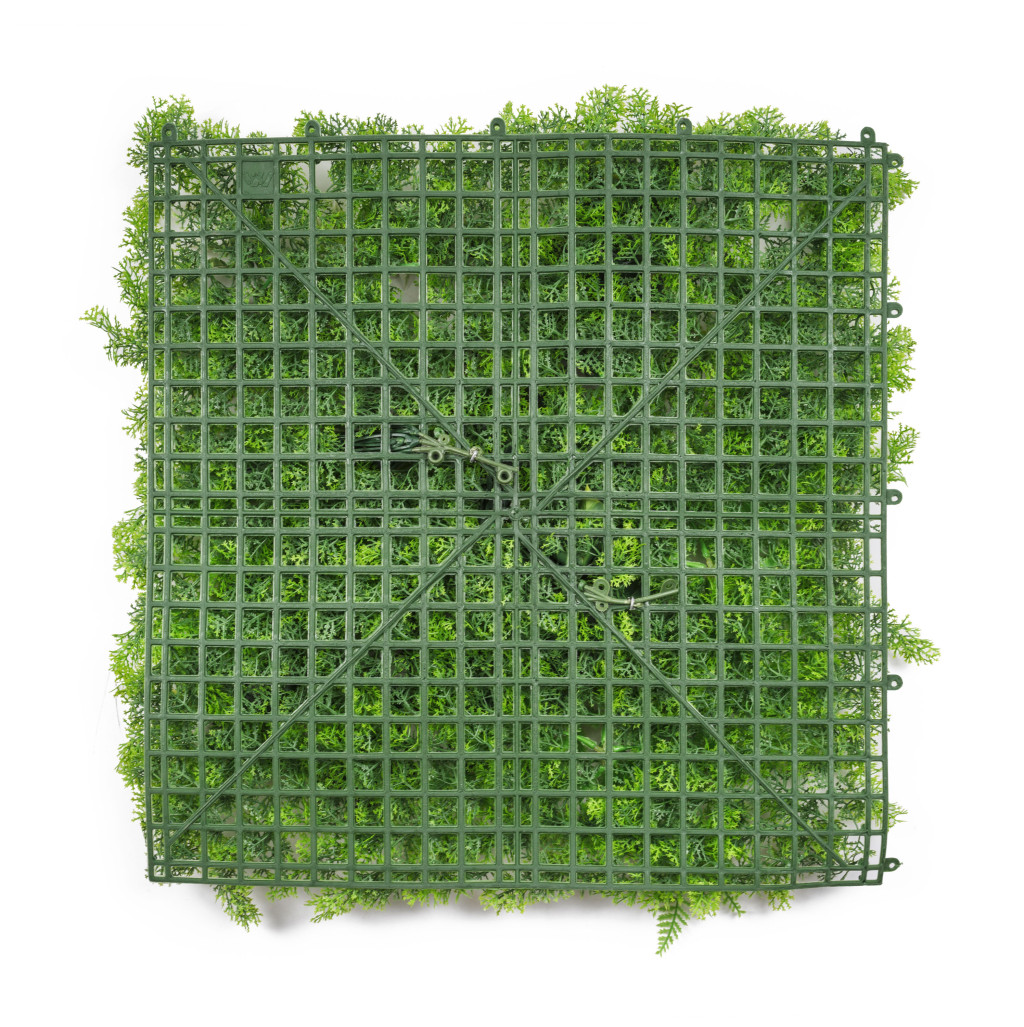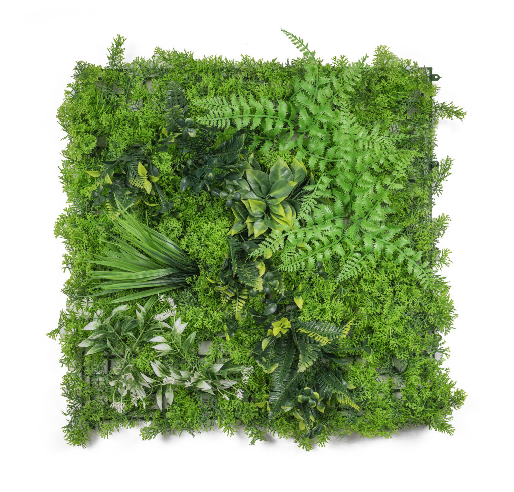 Egy panel, rengeteg lehetőség. Használja érdekes beltéri kiegészítőként, hozzon létre zöld falat a nappaliban, természetes sarkot az erkélyen vagy takarja el a régi kerítést. A 50 x 50 cm-es panelek könnyen kombinálhatók nagyobb egységekké a moduláris rácsrendszernek és a hátoldali rögzítőknek köszönhetően. Nincs szükség fúrásra vagy szerszámokra, elég egy kábelkötöző vagy egyszerű kampó. Kisebb méret kell? Egyszerűen vágja méretre.