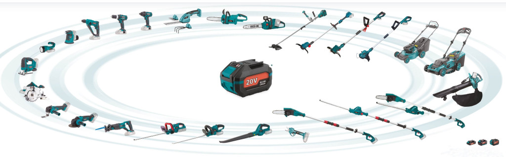 - ACCUMULTISYSTEM 20V széria - a széria minden készüléke kompatibilis ugyanazzal az akkumulátorral