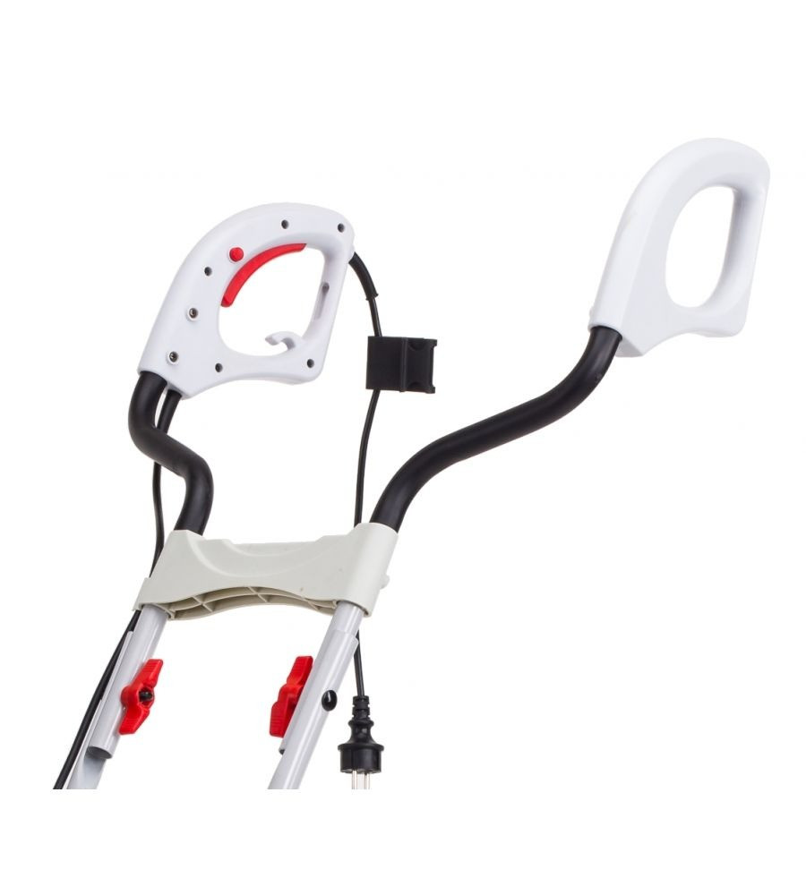 A ergonomikus fogantyúk kényelmes munkavégzést biztosítanak, mivel természetes kézpozíciót tesznek lehetővé. Ez jelentősen csökkenti a gerincre nehezedő nem kívánt nyomást, és optimális munkakomfortot nyújt. Ezenkívül a fogantyúk egy oszlopon helyezkednek el, amelyet tárolás vagy szállítás során bármikor lehajthat.