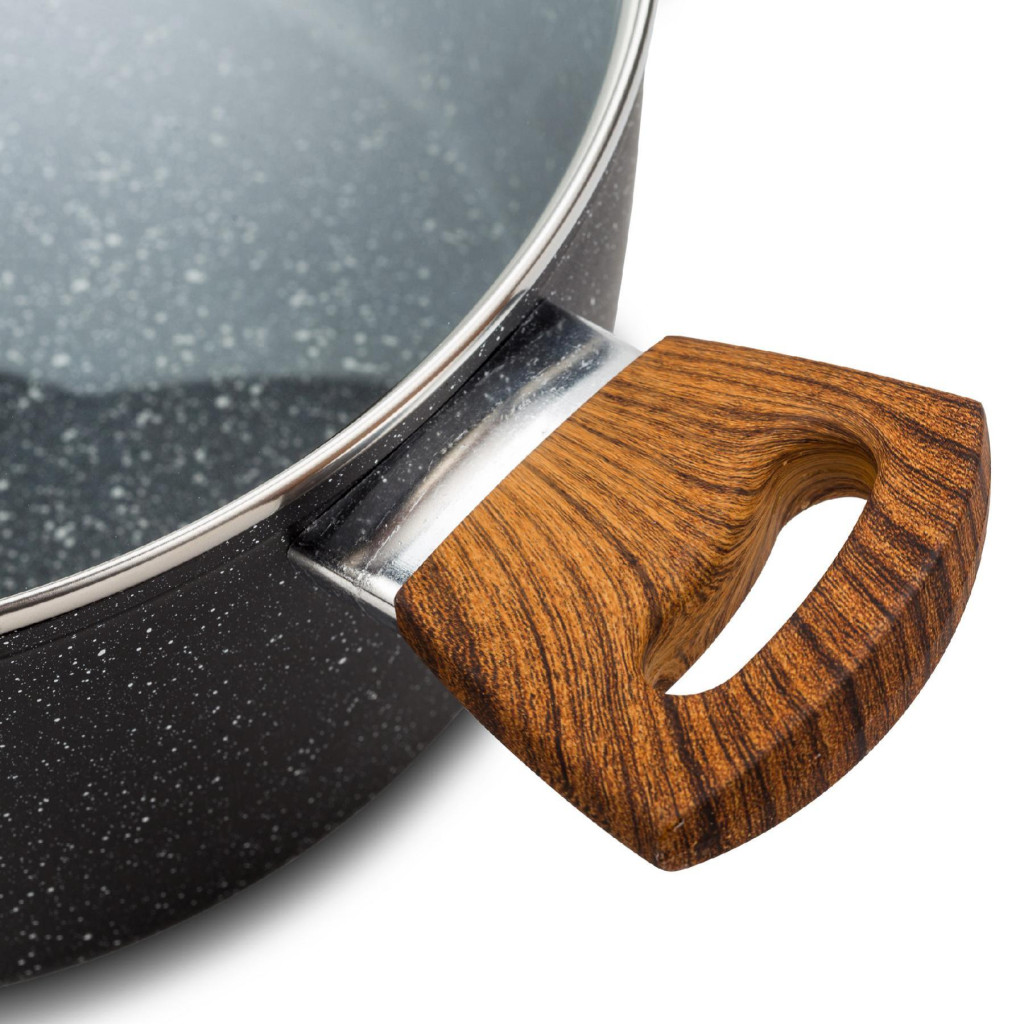 Ez a 28 cm átmérőjű pecsenyesütő tapadásmentes kőbevonattal rendelkezik, amely biztosítja, hogy az ételek ne ragadjanak le, és könnyedén tisztítható legyen.