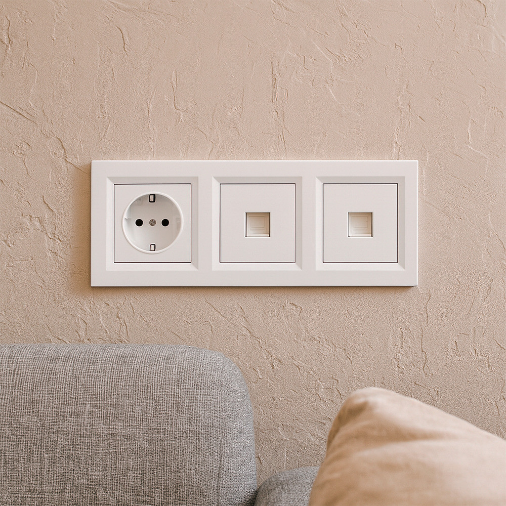 A Nova III földelt csatlakozóaljzat kettő UTP csatlakozóval ideális megoldás, ha egyetlen esztétikus fali egységben szeretnéd biztosítani az elektromos áramellátást és a stabil, vezetékes internetkapcsolatot. A földelt dugalj 16 A névleges áramerősséggel és 250 V AC feszültséggel működik, így biztonságosan használható a legtöbb háztartási és irodai elektromos készülékkel. A két RJ-45 (8P8C) csatlakozó Cat5e kompatibilitással nagy sebességű, megbízható adatátvitelt biztosít számítógépek, okostévék, játékkonzolok vagy hálózati eszközök számára.