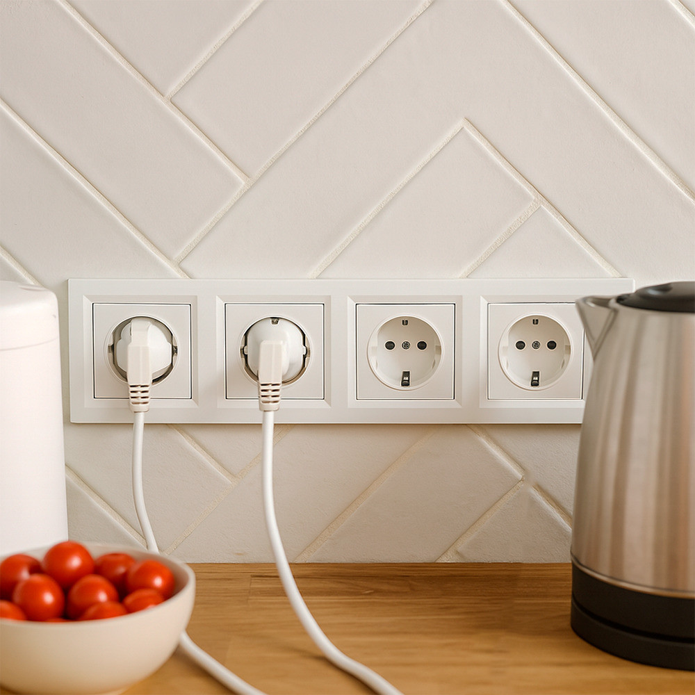 A Nova IV négyes földelt csatlakozóaljzat ideális megoldás, ha több eszközt szeretnél egy helyen, biztonságosan csatlakoztatni. A 16 A / 250 V névleges értékeknek köszönhetően alkalmas nagyobb teljesítményű háztartási vagy irodai készülékek – például konyhai gépek, számítástechnikai eszközök vagy takarítógépek – egyidejű használatára. A süllyesztett kivitel, a keret nélküli modul és a mellékelt fehér, vízszintes négyes keret letisztult, modern megjelenést biztosít. IP20-as védettsége miatt kizárólag száraz, pormentes beltéri környezetben alkalmazható. Telepítését minden esetben szakképzett villanyszerelőnek kell elvégeznie a biztonsági előírások betartásával.