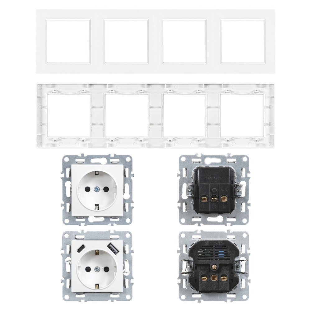 • Kialakítás: Keret nélküli modul fehér négyes kerettel