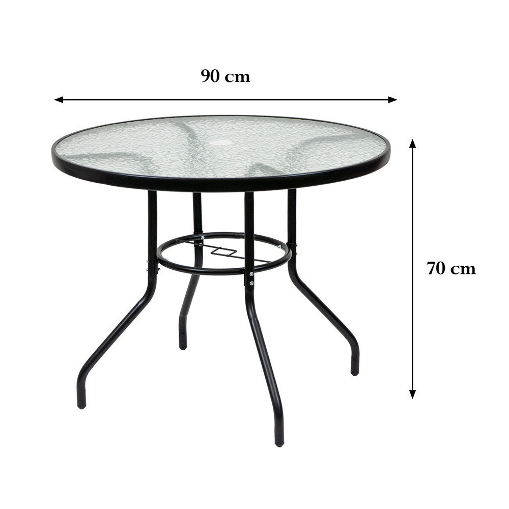 Ez egy modern és elegáns kerti asztal, amely a fémváz és az áttetsző üveglap kombinációjával tökéletesen illeszkedik bármilyen kerti vagy terasz környezetbe. A 90 cm széles és 70 cm magas mérete miatt könnyedén körbe lehet ülni és elférnek rajta az ételek is, így ideális helyszíne lehet az otthoni étkezéseknek és a szabadtéri összejöveteleknek egyaránt. A fémváz tartóssága és az üveglap könnyű tisztíthatósága miatt hosszú távra, ideális megoldás. Ez a stílusos és praktikus kerti asztal tökéletes választás a szabadban való étkezéshez és időtöltéshez lakossági és üzleti felhasználásra egyaránt ajánljuk.