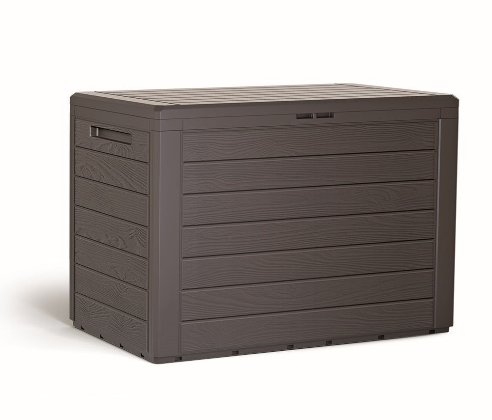 A Prosperplast Woodebox kerti box egy praktikus kültéri segítő. Fa utánzatú kialakításának köszönhetően kertjének, teraszának vagy erkélyének dísze lesz. Antracit színe kellemes a szemnek. A szellőző dobozban a gyermekjátékoktól kezdve a takarókig és párnákig mindent tárolhat. Egy lakattal is biztosítható, hogy az értékesebb tárgyakat bezárhassa belsejébe. A dobozt bárki össze tudja szerelni. A doboz egyes részei összecsattannak, így az összeszerelés nem tart sokáig, és szerszámokra sincs szükség. A doboz oldalán fogantyúk találhatók a könnyű hordozás érdekében. A doboz fedele műanyag zsanérokkal csukható.