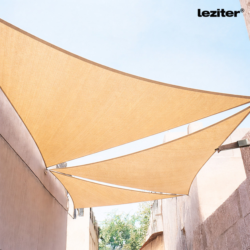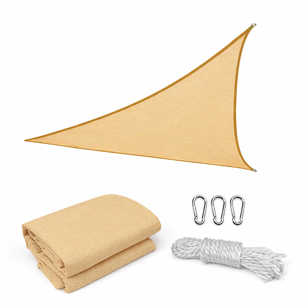 A háromszög alakú 4x4x4 méteres bézs, beige színű napvitorla alkalmas arra, hogy árnyékot biztosítson a kertben, teraszon, medence körül vagy bármilyen más kültéri területen. Az ilyen típusú napvitorlák gyakran használatosak kávézók, éttermek és szállodák teraszain, ahol ügyfelek kényelmesebben élvezhetik az ételeket és italokat, miközben védik őket a napsütéstől. Emellett a napvitorlák hozzájárulnak a kellemesebb, egészségesebb kültéri élményhez. A napvitorla használható otthoni vagy kereskedelmi célokra egyaránt, és ideális választás azoknak, akik szeretnének egy modern és esztétikus árnyékolót, amely könnyen telepíthető és eltávolítható.