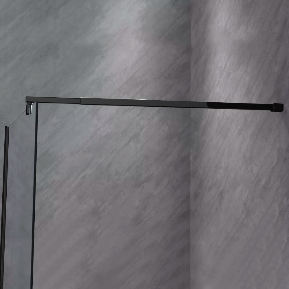 Zuhanyfal fekete profillal és méretre vágható távtartó rúddal