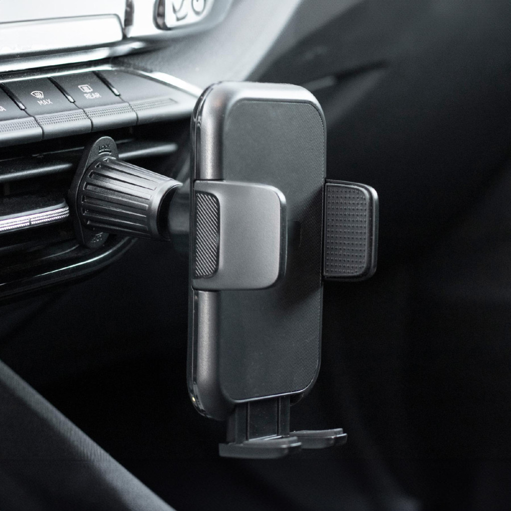 Az erős, fém akasztóval a tartó könnyen illeszkedik a vízszintes vagy függőleges szellőző lamellákhoz (10-36mm), míg a kb. 55-95mm telefon szélességig (kb. 4-7” képátló) alkalmazkodó kialakítás szinte minden készülékhez ideális.