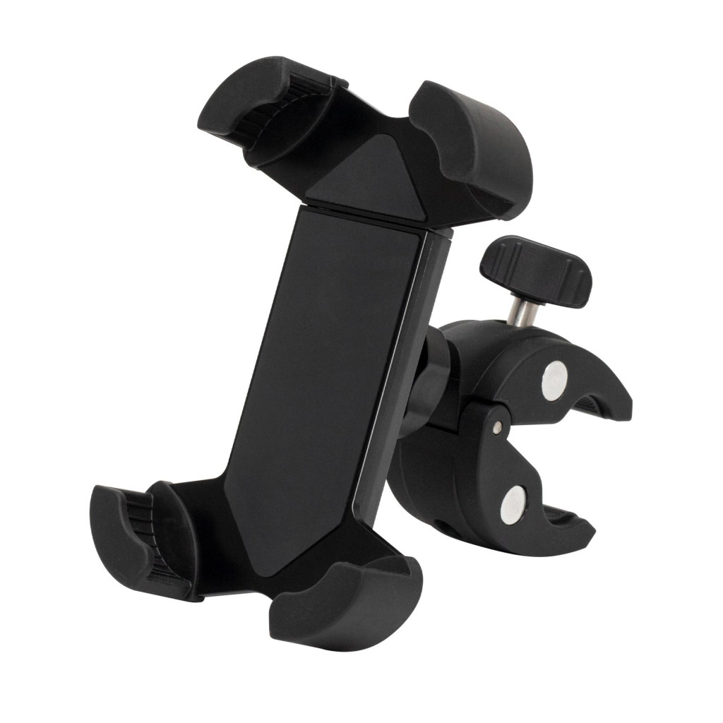 SAL SA065 kerékpáros, rolleres mobiltartó, masszív tartóbilincs, biztonsági retesz, védett sarokelemek, gumi és szilikonbetétek, 18 - 45 mm kormányátmérőre