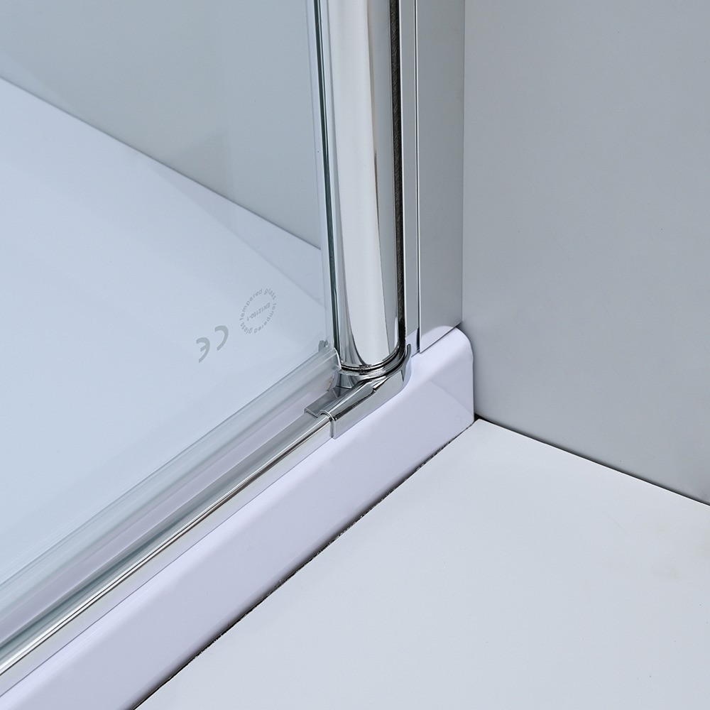 A zuhanyajtó Alumínium ötvözet polírozott profillal, 5 mm-es víztiszta edzett biztonsági üveggel és cink fogantyúval van ellátva. A modell 800 x 1950 mm méretű, és 785-805 mm között állíható.