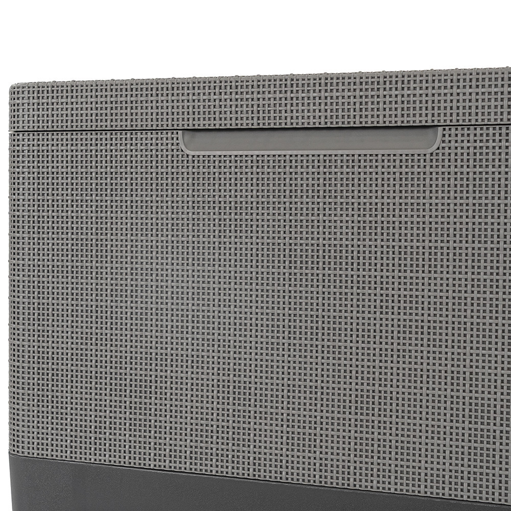 A Scandi jute tárolós asztal letisztult, modern formavilágot képvisel, amely illeszkedik a Scandi kollekció stílusához. A grafit–hűvös szürke árnyalat visszafogott és könnyen kombinálható különböző kültéri bútorokkal és burkolatokkal. A kompakt kialakítás lehetővé teszi, hogy kisebb teraszokon, erkélyeken vagy kertben is praktikus elhelyezést kapjon, miközben önálló bútordarabként is esztétikus megjelenést biztosít.
