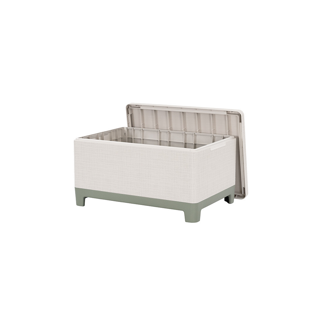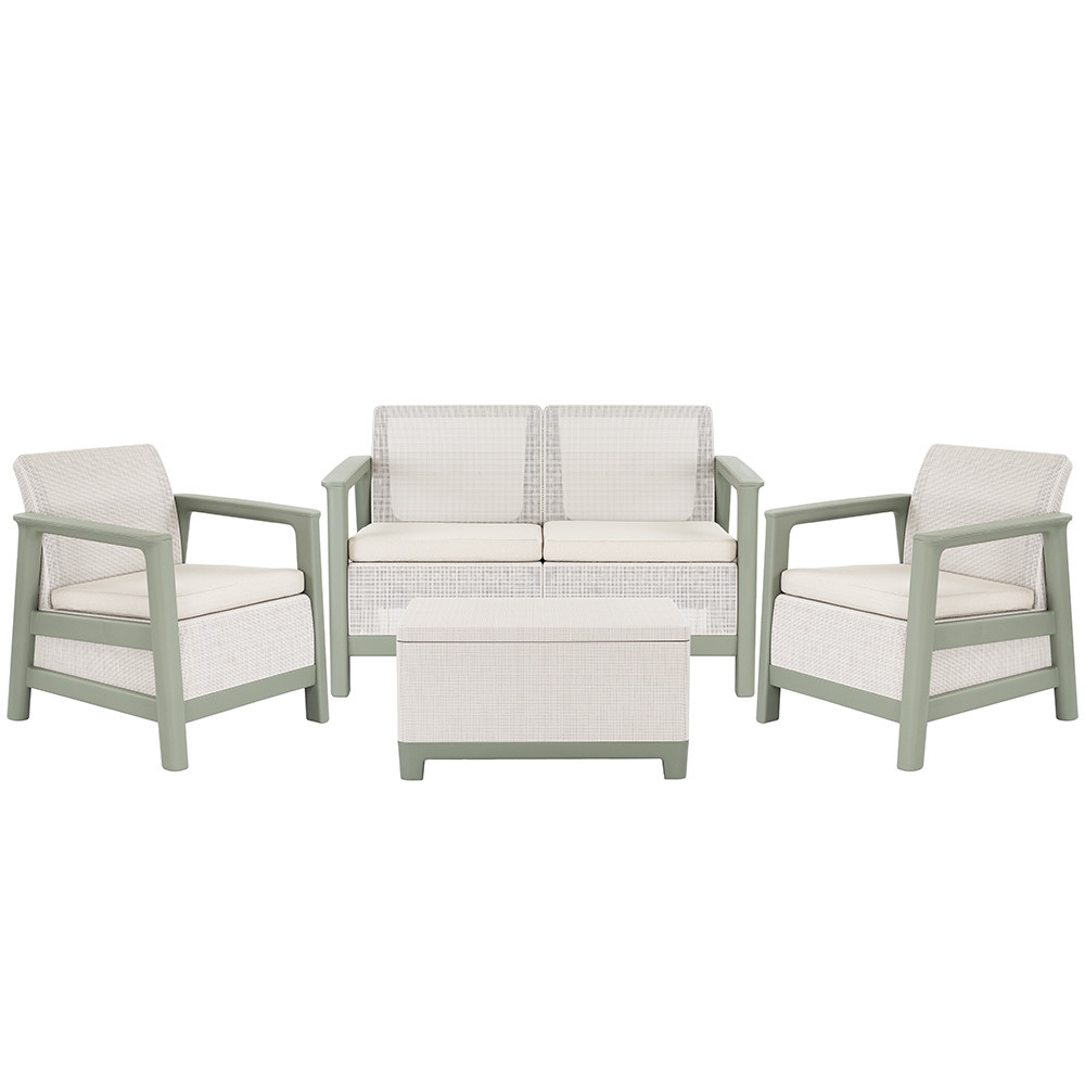 Scandi Linea kerti bútor szett jute tárolós asztallal – zsálya zöld-homok