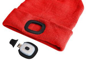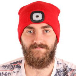 Sapka LED-es fejpánttal, beépített LED-es fény 180 lm (4x45 lm), 3 világítási mód - 50%, 75% és 100%, az akkumulátor élettartama akár 4 óra, a fejpánt levehető és a sapka mosható, hátul fényvisszaverő, egyszerű újratöltés USB-n keresztül, piros