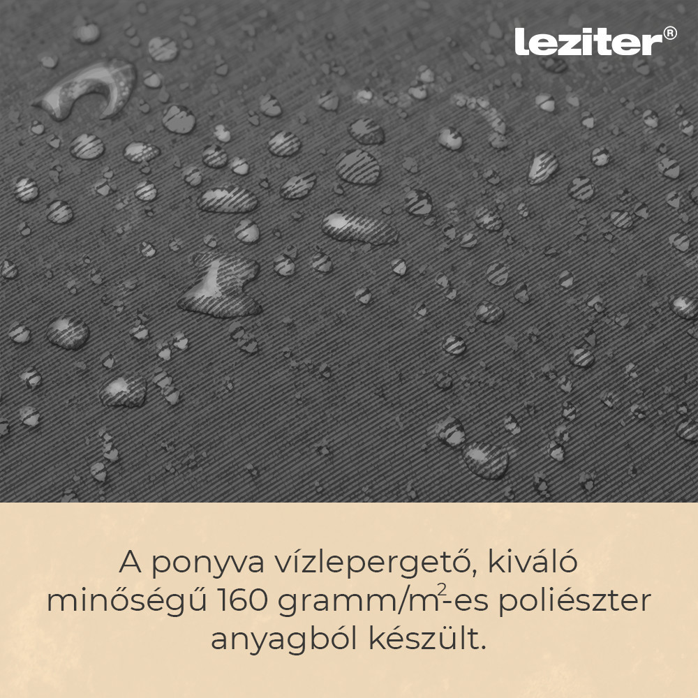 - Ponyva anyaga: 160 g/m² poliészter PA bevonattal