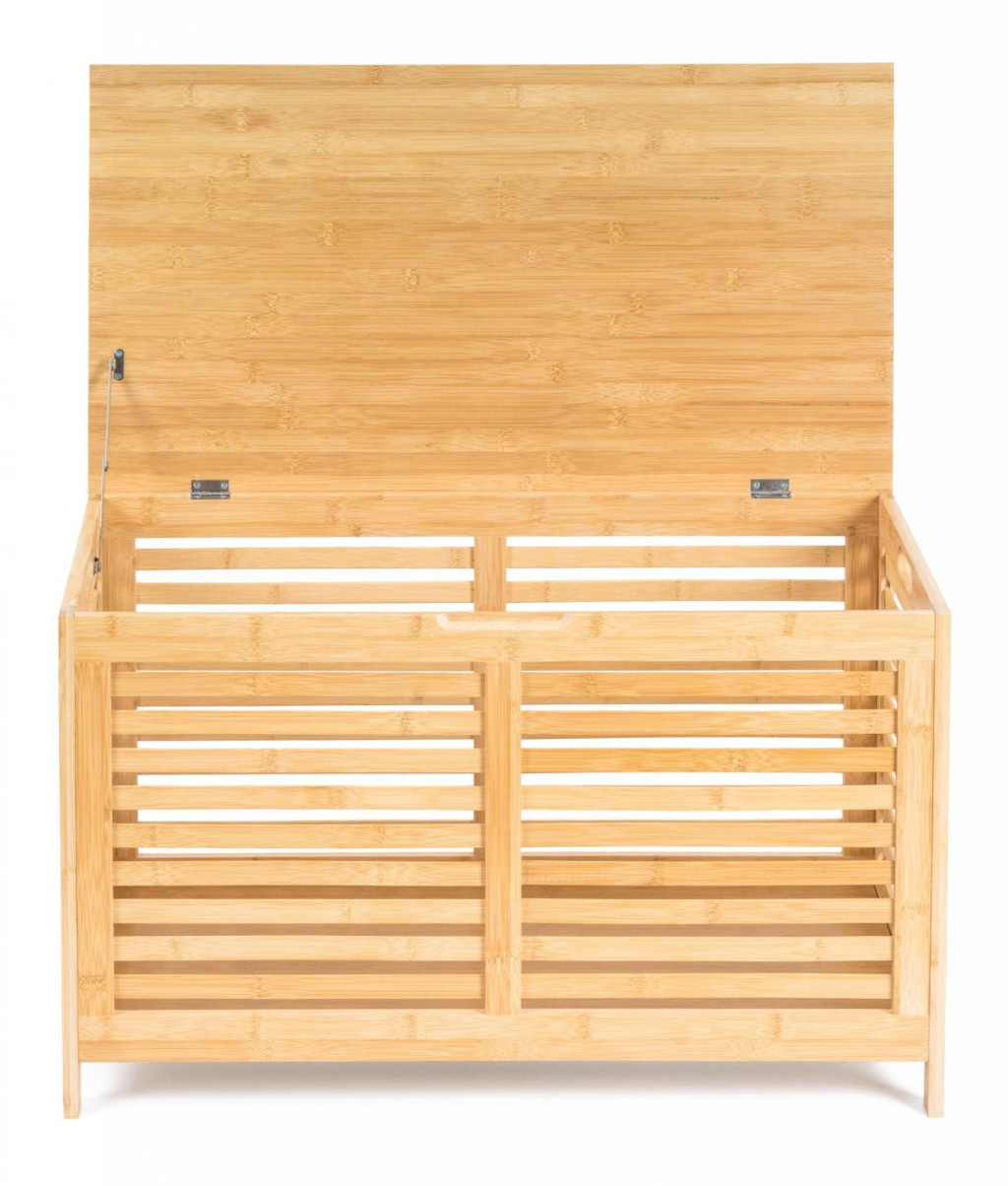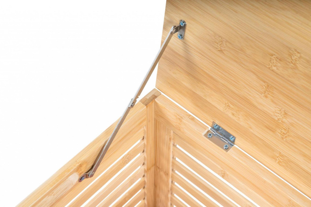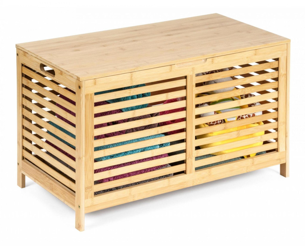 Ez a bambusz doboz nagyszerű kiegészítője a hálószobának, a gyerekszobának, a nappalinak vagy a folyosónak. 10 kg belső teherbírású tárolóhelyet kínál takarók, párnák vagy szezonális ruhák tárolására, a gyerekek elhelyezhetik kedvenc játékaikat, az előszobában pedig szezonális kiegészítőket, esernyőket és hasonlókat.