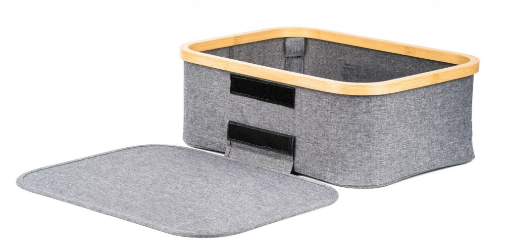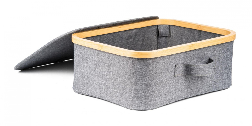 Nézze meg a bambusz erősítéssel, szövet fogantyúval és levehető fedéllel ellátott tárolódoboz nagyszerű tulajdonságait. A doboz önmagában vagy a G21 bambusz állványok és polcok kiegészítéseként is használható.