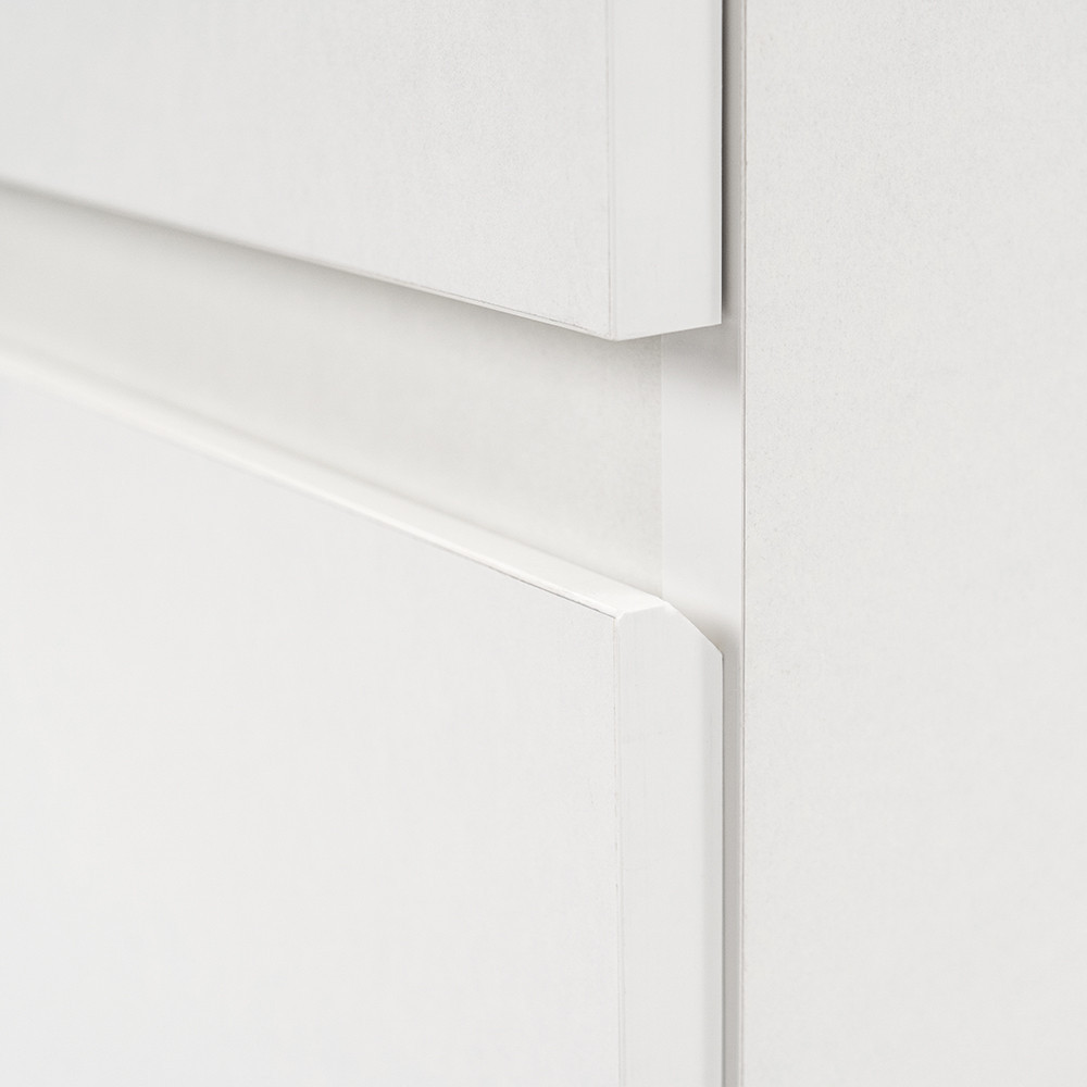 Az fehér korpusz és a fehér front kombinációja elegáns és időtálló megjelenést kölcsönöz a bútornak.