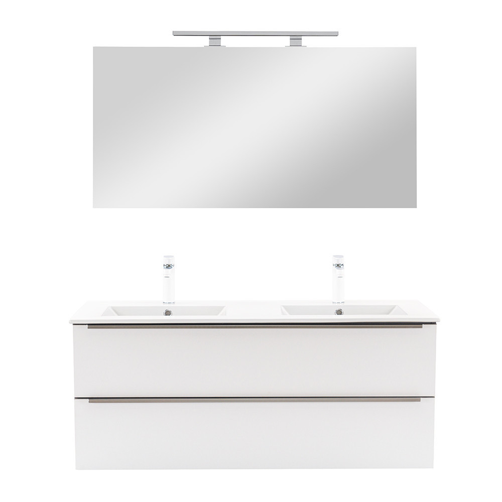A bútor flat design kerámia mosdóval érkezik, amely kétmedencés kivitelű. Modern, esztétikus és könnyen tisztítható.