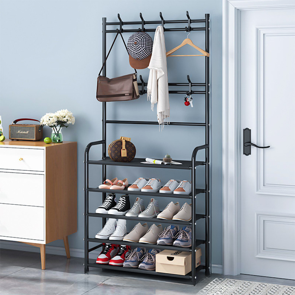 • Sokoldalú felhasználhatóság: Az állvány nemcsak ruhák és cipők tárolására alkalmas, hanem kalapok, táskák, sálak és egyéb kiegészítők rendszerezésére is.