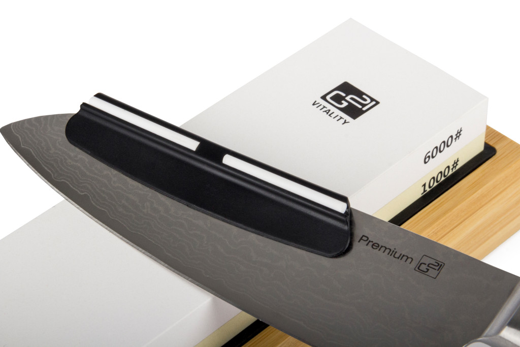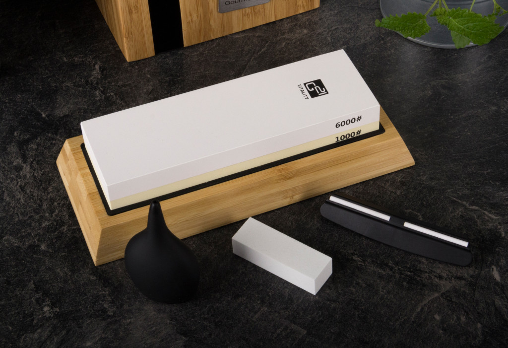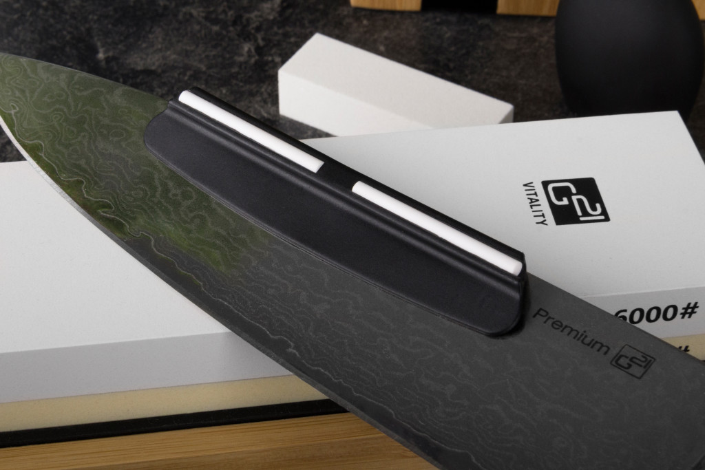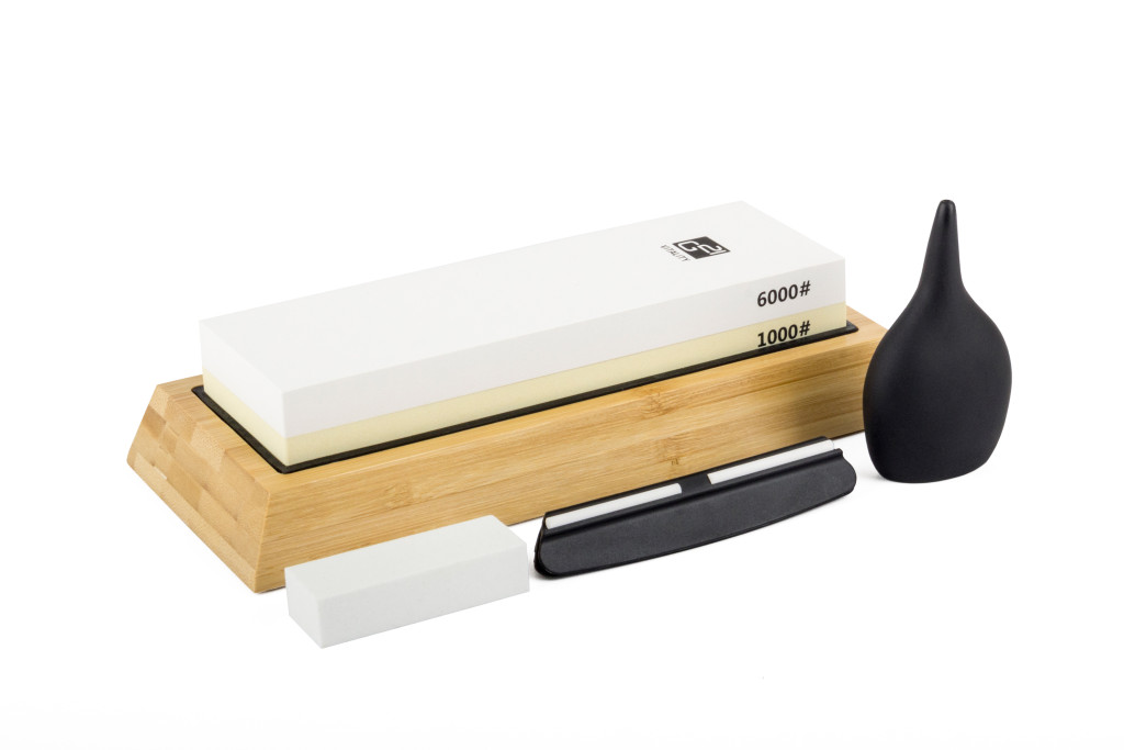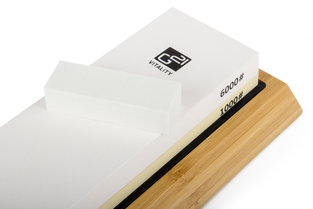 A fenőkés egy bambusztömbön van elhelyezve. A csomag tartalmaz még egy kerámia síkolókőt (1db) – (magas minőségű, nagy keménységű, mely elengedhetetlen a fenőkövek karbantartásához. A fenőkövek felülete használat során elveszítheti teljesen sík jellegét, márpedig a hatékony élezéshez szükséges, hogy a fenőkő felülete sík legyen) valamint egy élszögtartó segédet (1 db).