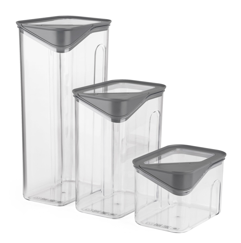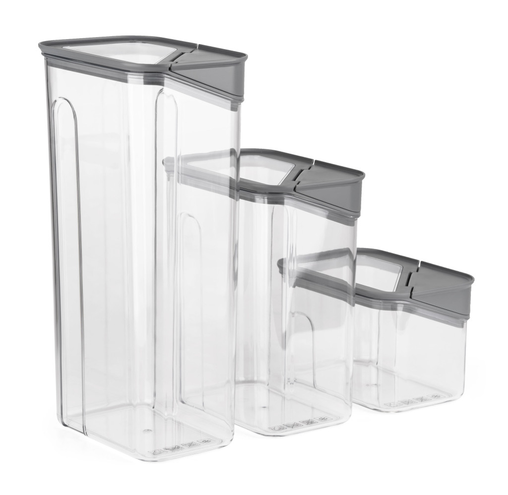 A G21 tárolódobozokat használhatod liszt, tészta, rizs vagy aszalt gyümölcs tárolására is. A három különböző méret lehetővé teszi a hűtő vagy kamra személyre szabott rendszerezését. A légmentesen záródó fedél tovább megőrzi az ételek frissességét, míg a felnyitható kiöntőnyílás kényelmes és pontos adagolást biztosít. A kiváló minőségű műanyag BPA-mentes, így 100%-ban biztonságos az élelmiszerekhez. Az egymásra helyezhető forma segíti a helytakarékos tárolást.