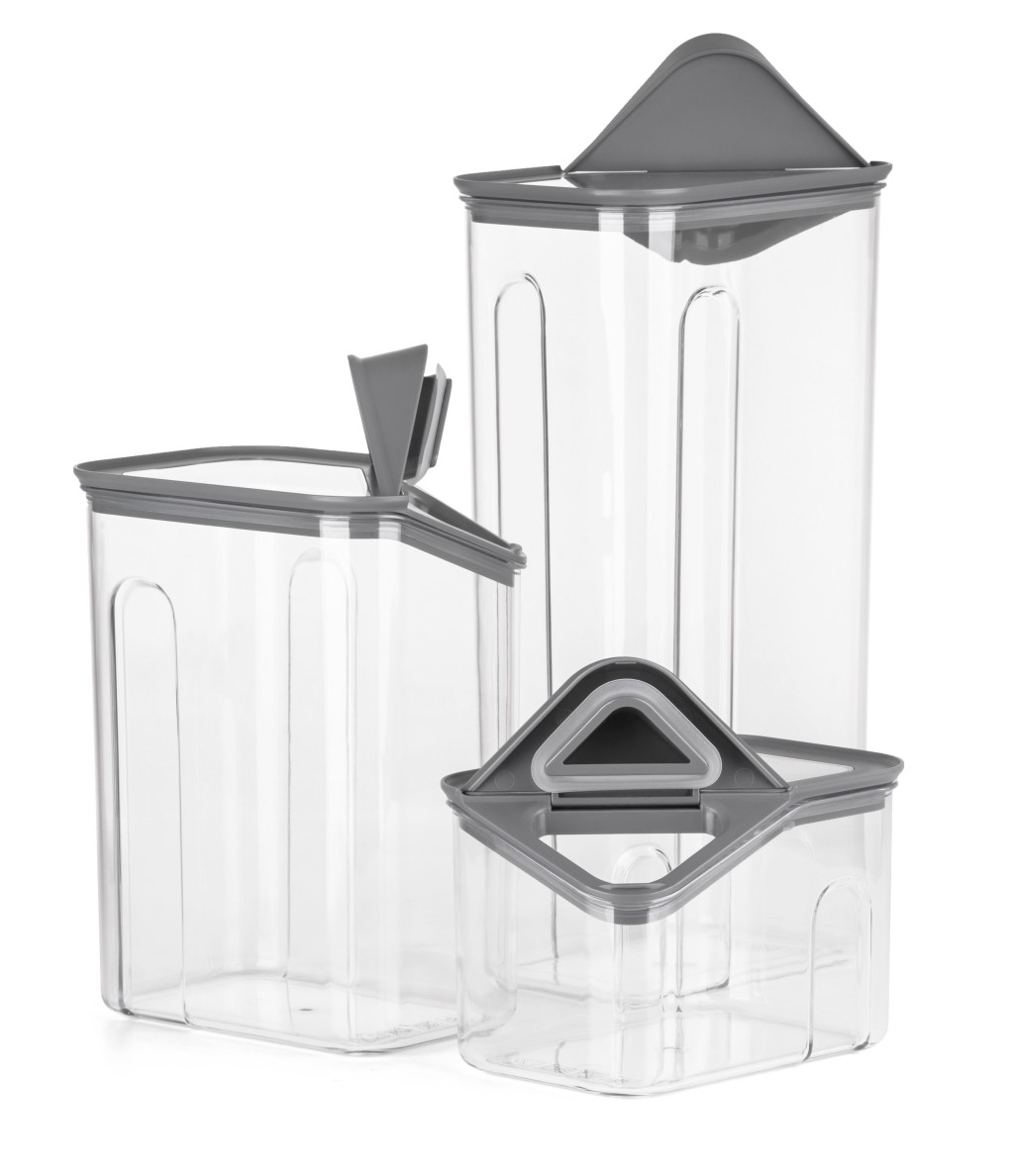Álmodozol egy tökéletesen rendszerezett konyháról és éléskamráról? Rendet szeretnél a szekrényeidben? Tartsd rendben a konyhádat a G21 márkájú műanyag élelmiszertároló dobozokkal – a szekrényeid és hűtőd is hálásak lesznek. A készlet 3 különböző méretű, egymásra rakható dobozt tartalmaz, amelyek légmentesen záródó, felnyitható kiöntőnyílásos tetővel vannak ellátva. Ennek köszönhetően egyszerű és tiszta az adagolás. Használhatók hűtőben és fagyasztóban is – tökéletes megoldás az élelmiszerek átlátható tárolására.