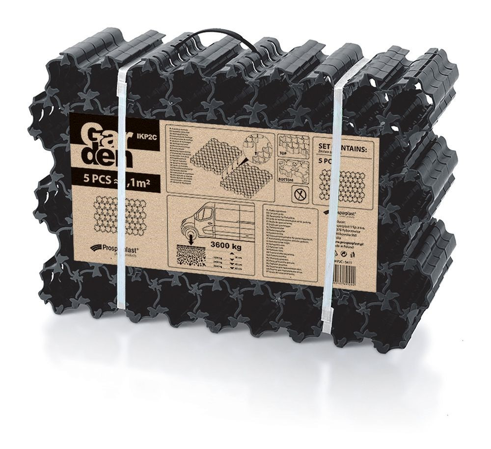 A speciális Prosperplast PLANT rács füvesítendő területekre alkalmasak. Ugyanakkor sárra és kátyúzásra hajlamos utak burkolására is használhatóak. Az ültetett fű a rácson lévő lyukakon keresztül fog nőni. Természetes megjelenést kölcsönöz az udvarának vagy a kerti járdáknak. A burkolólapok maximális terhelhetősége 3600 kg.