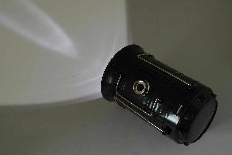 Nagy teljesítményű lámpás, ideális kempingezéshez, microUSB vagy napelemes töltés, kapcsológomb. 1x nagy teljesítményű elülső LED lámpa, 6x LED elrejtve a kihúzható testben, vakítás mentes. USB port power bankként való használatra, akár 2,5 óra fényidő.