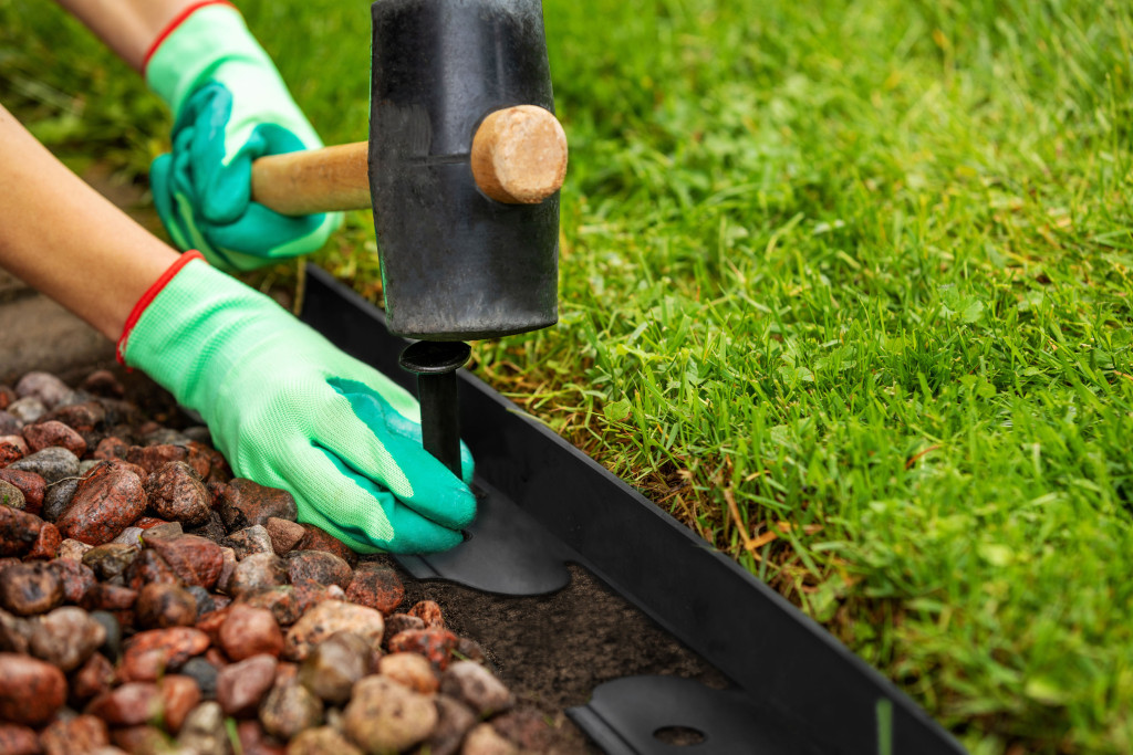 Új ágyás vagy terület létrehozása - fektesse ki a szegélylécet a kívánt alakban, töltse fel kívül és belül az Ön által választott anyaggal (talaj, mulcs, kavics stb.).