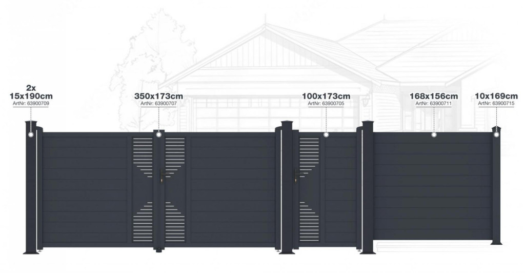 A vízszintesen elhelyezett, rés nélküli lécek elegendő magánéletet és modern dizájnt ötvöznek, így a kerítés ízlésesen kiegészíti bármilyen típusú kerítést. Kialakításuknak köszönhetően bármilyen tárgyhoz illeszkednek, és aláhúzzák annak összbenyomását.