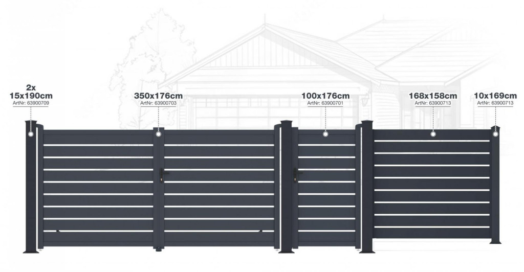 A vízszintesen elhelyezett, rés nélküli lécek elegendő magánéletet és modern dizájnt ötvöznek, így a kerítés ízlésesen kiegészíti bármilyen típusú kerítést. Kialakításuknak köszönhetően bármilyen tárgyhoz illeszkednek, és aláhúzzák annak összbenyomását.