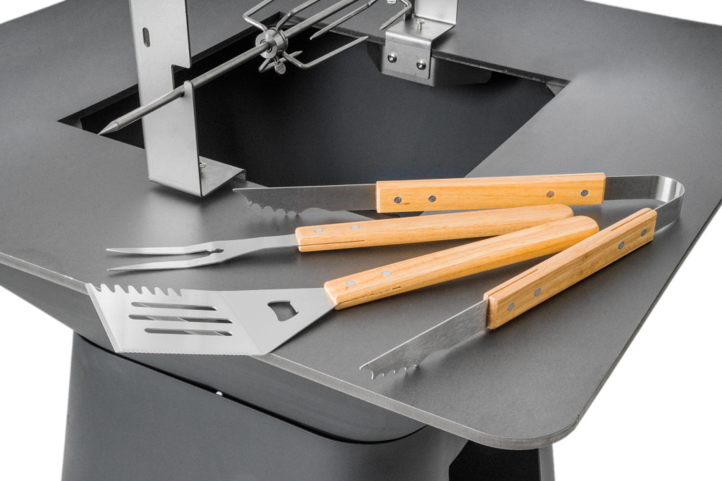 - komplett készlet forgatóval, grillvillával és grillfogóval