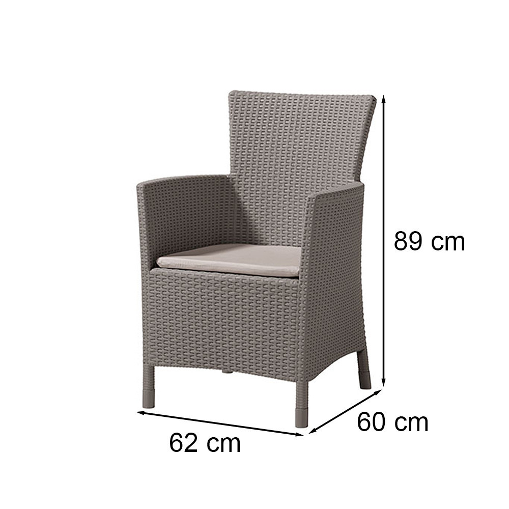 A Iowa Balcony kerti bútor garnitúra luzon kényelem és a stílusos design tökéletes ötvözetét kínálja az erkélyen vagy a teraszon. A cappuccino színű rattan hatású felület elegáns megjelenést kölcsönöz, miközben a puha párnákkal ellátott karosszékek komfortossá teszik a kikapcsolódást.